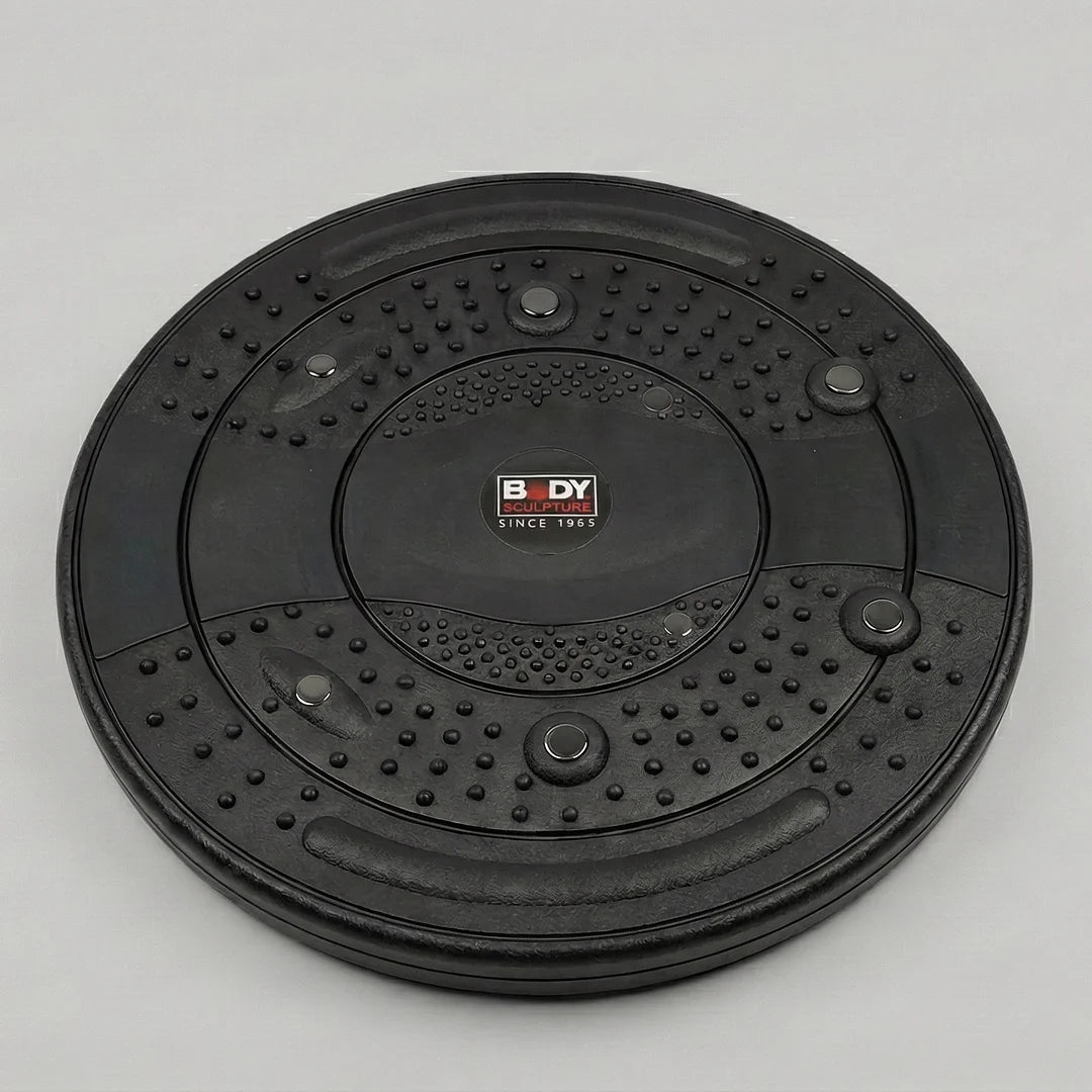 Twister disc with integrated magnets at foot reflexology points to stimulate blood flow.